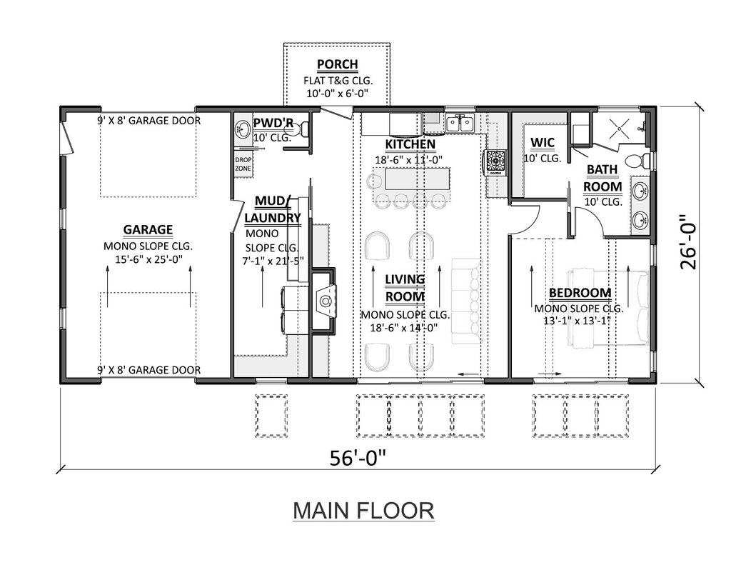 - Overhead Roof Plan(s): A bird's-eye view of the roof showing pitches and simple overhang details.