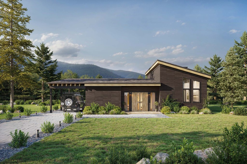 - Exterior Elevations: Views of the home from all four sides showing exterior materials, roof slope, ridge heights, siding and trim notes.