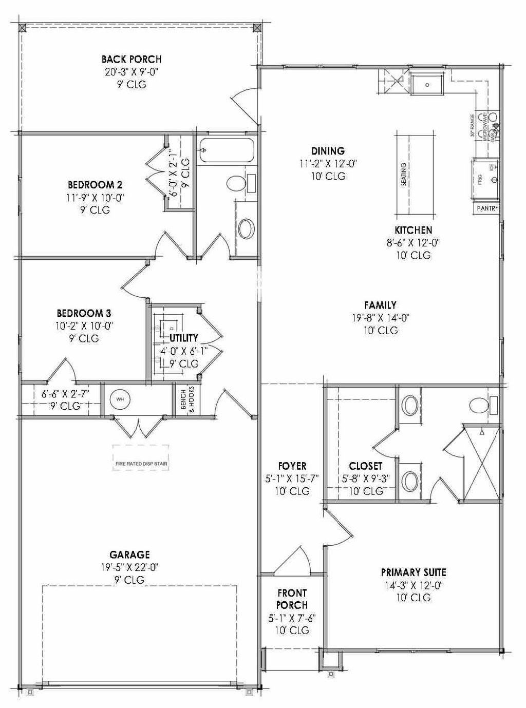Main Ceiling: 10'