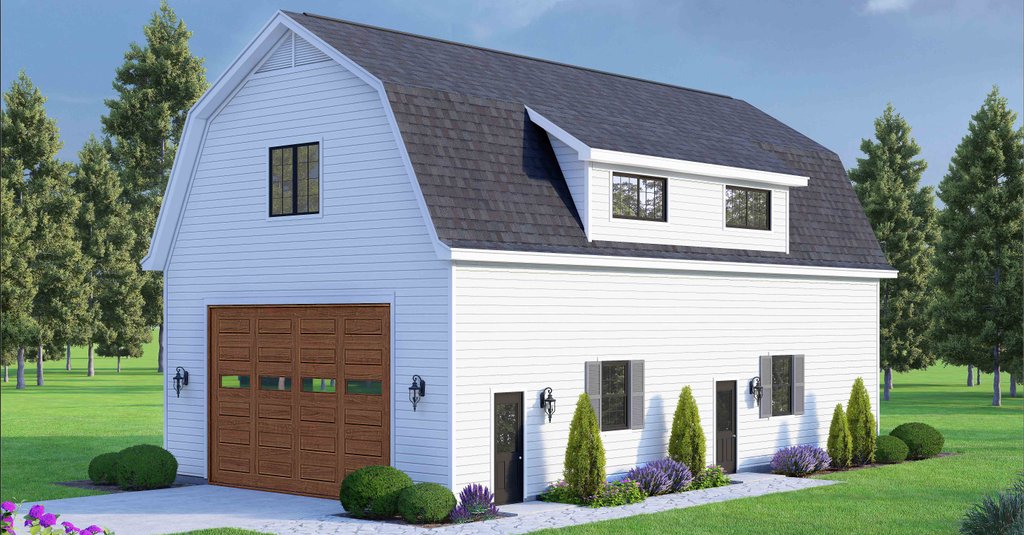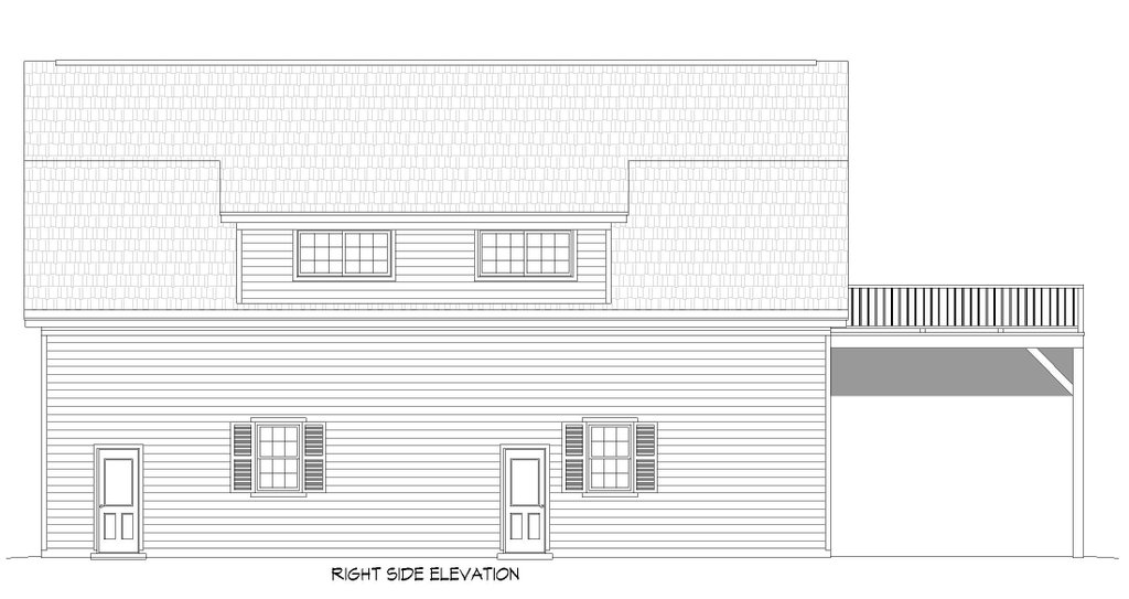 - Exterior Elevations: Views of the home from all four sides showing exterior materials, roof slope, ridge heights, siding and trim notes.