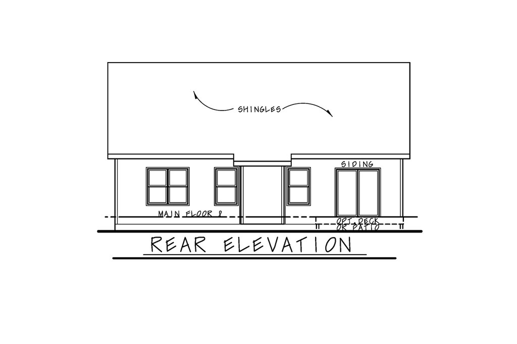 - Exterior Elevations: Drafted at 1/4" scale for the front and 1/8" scale for the rear and sides. All elevations are noted and an aerial view of the roof is provided, showing all hips, valleys and ridges.