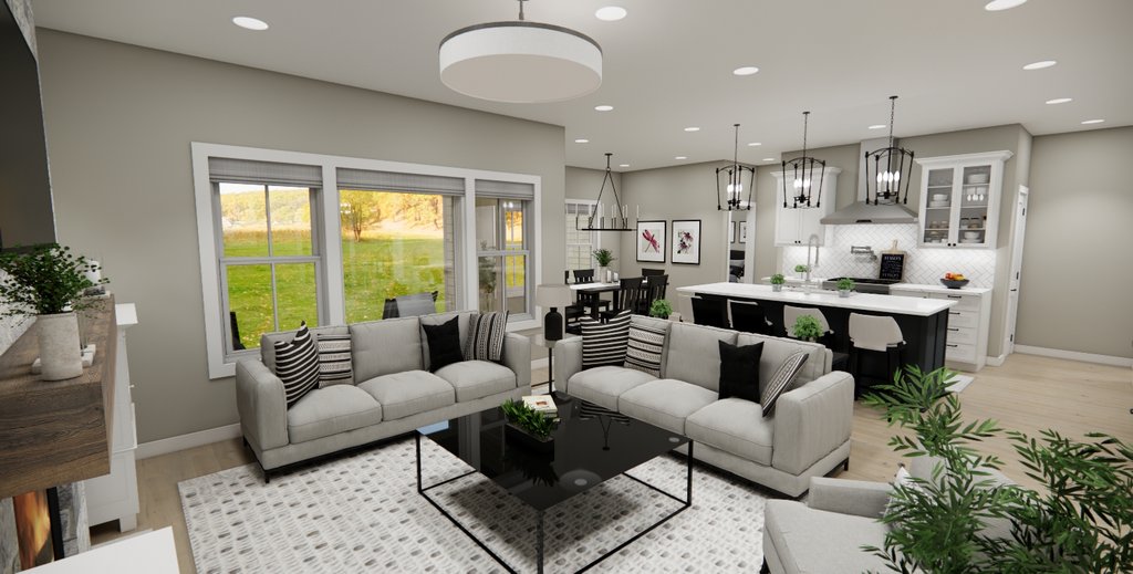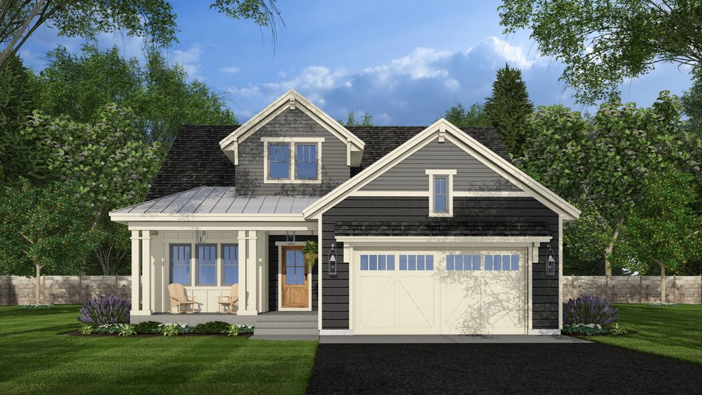 Welcome to this beautifully crafted two-story Bungalow that perfectly blends style with functionality. This home features 3 bedrooms, 2.5 bathrooms, and spacious common areas designed for both relaxation and entertainment. The main floor offers of open-concept living, beginning with a welcoming front porch and bright foyer with 9-foot ceilings throughout. Just off the entry, a versatile office makes working from home easy and convenient. The kitchen is a true centerpiece featuring a large 8-foot island with seating, generous counter space, and a seamless flow into the dining area and cozy great room with a fireplace. The private primary suite is located on the main level and includes a spacious walk-in closet and a luxurious en-suite bath with double vanities, a soaking tub, and a separate shower. The upper level includes two additional bedrooms, a shared full bath, and a centrally located linen closet. A large loft space offers endless possibilities as a media room, game area, or additional lounge space. Additional highlights include a mudroom with laundry off the 2-car garage, ample storage throughout, and walk-in closets in multiple bedrooms. This home combines the classic Bungalow style with convenience, ideal for families, remote professionals, or anyone looking for a warm, inviting place to call home.