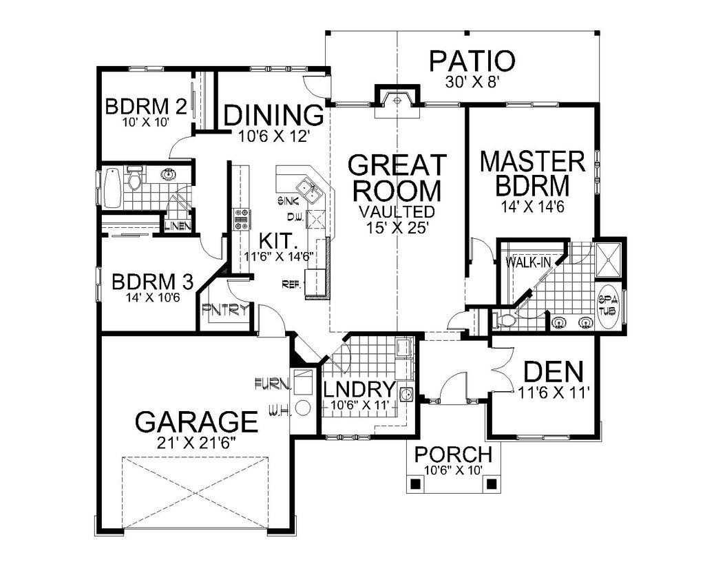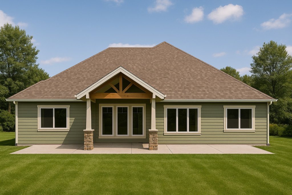 Ceiling Details : Ceiling Heights: Main Floor: 9’-0” Garage: 9’-6” Great Room: 0’-0” at wall sloping to 11’-2” at interior ridge.