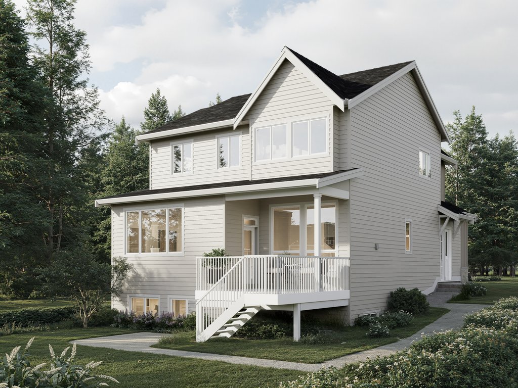 - Exterior Elevations: Views of the front, rear, and sides of the home detailing exterior finish work.