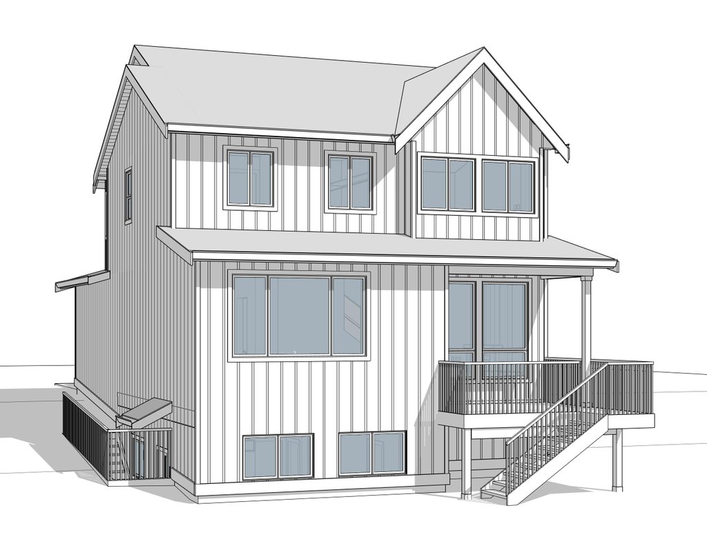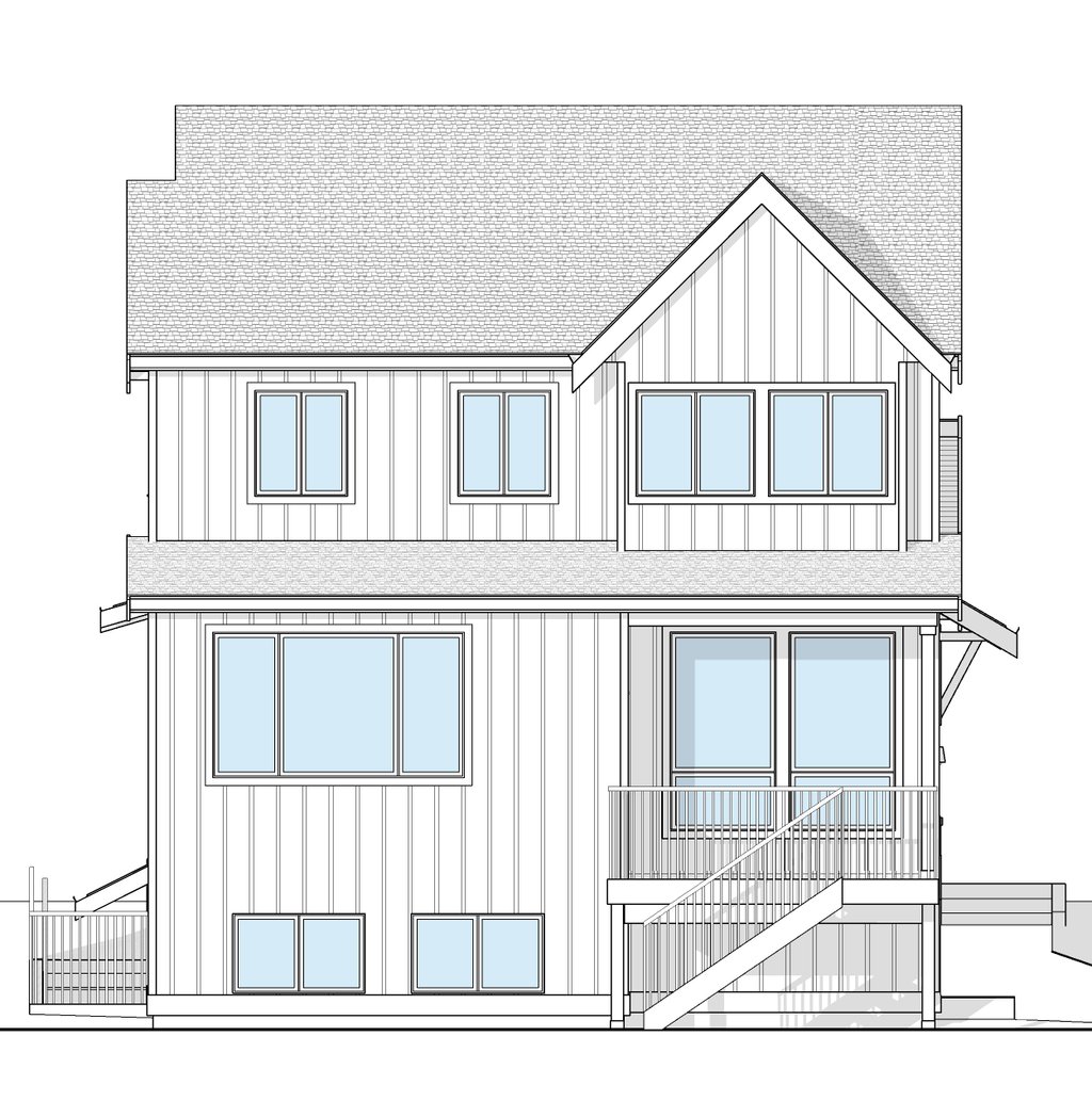 - Exterior Elevations: Views of the front, rear, and sides of the home detailing exterior finish work.
