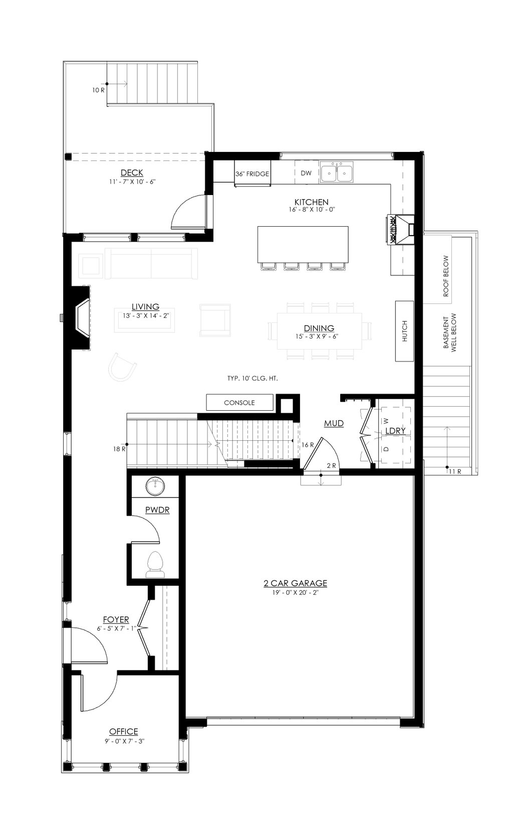 - Roof Plan: Roof framing sizes/layout, roof pitch, attic venting, overhangs, roof finish materials, etc.
