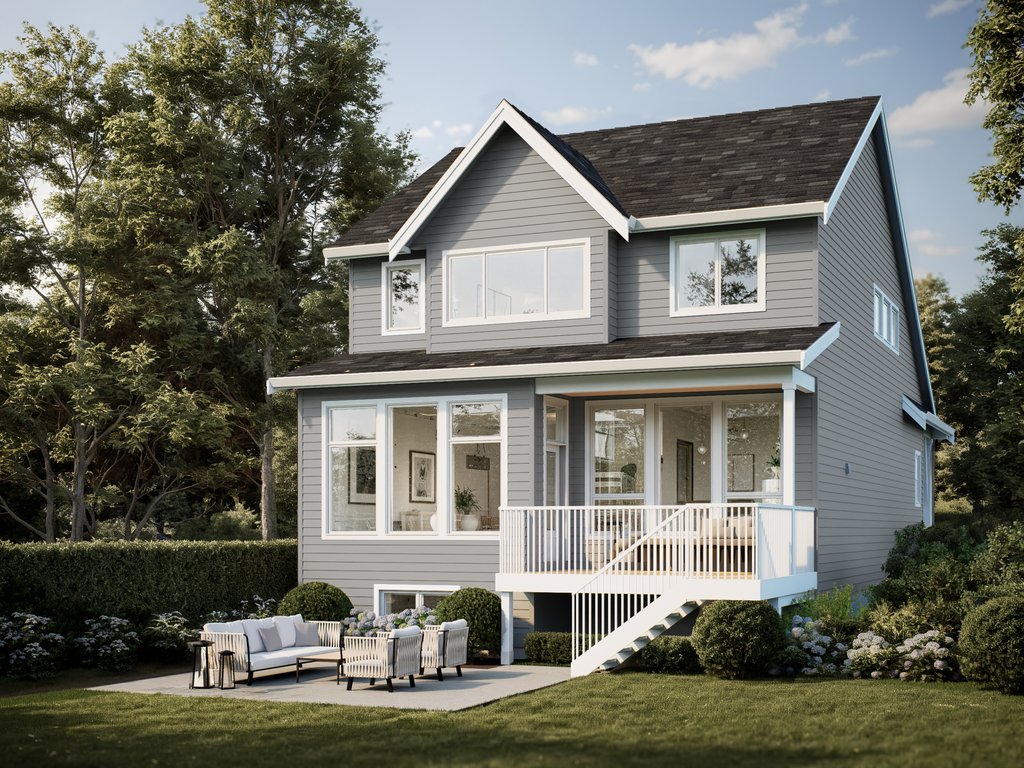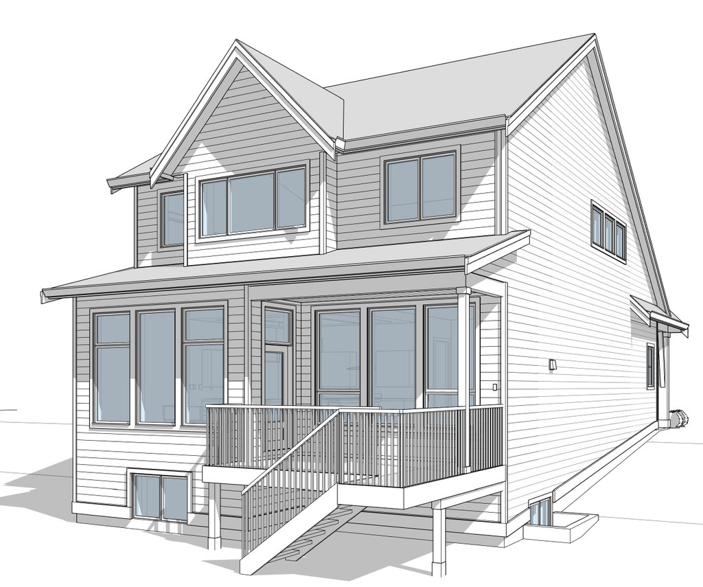 - Exterior Elevations: Views of the front, rear, and sides of the home detailing exterior finish work.