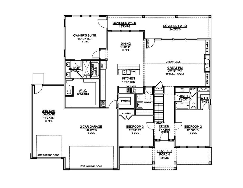 Ceiling Details : Entry Stairwell has 11' Flat Ceiling Great Room has 11' vaulted cathedral ceiling.