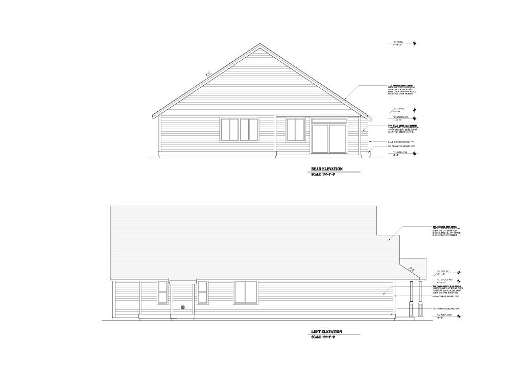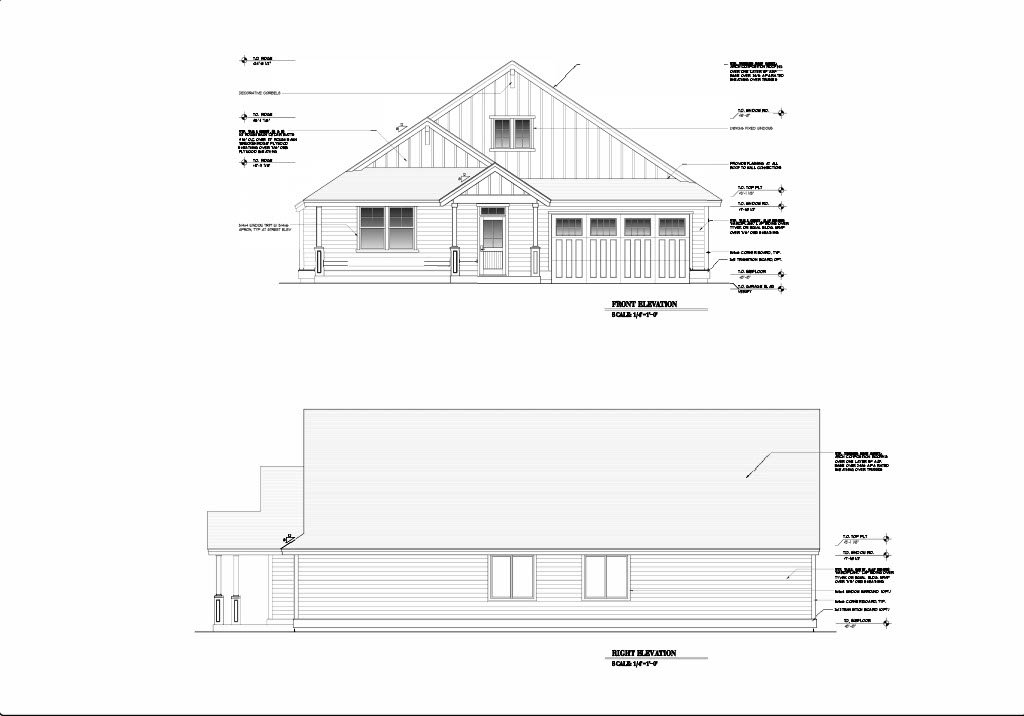 - Exterior Elevations: A blueprint picture of all four sides showing exterior materials and measurements.