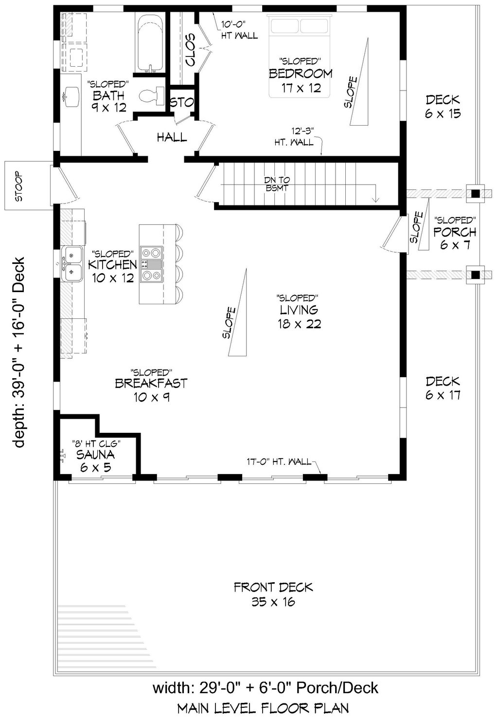Ceiling Details : Ceiling slopes from 10'-0" to 17'-0" height.
