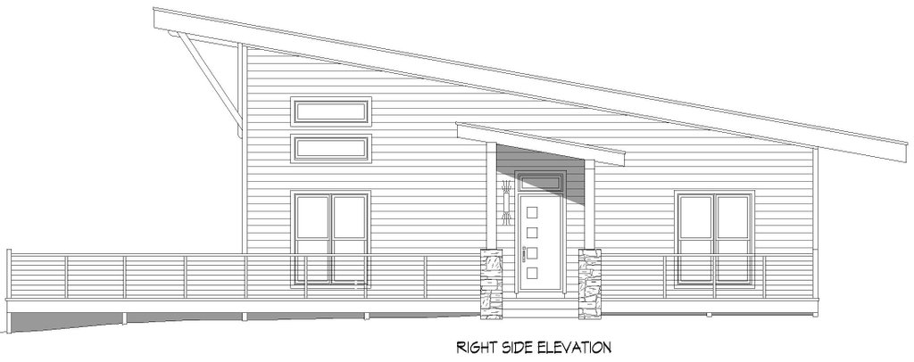 - Exterior Elevations: Views of the home from all four sides showing exterior materials, roof slope, ridge heights, siding and trim notes.