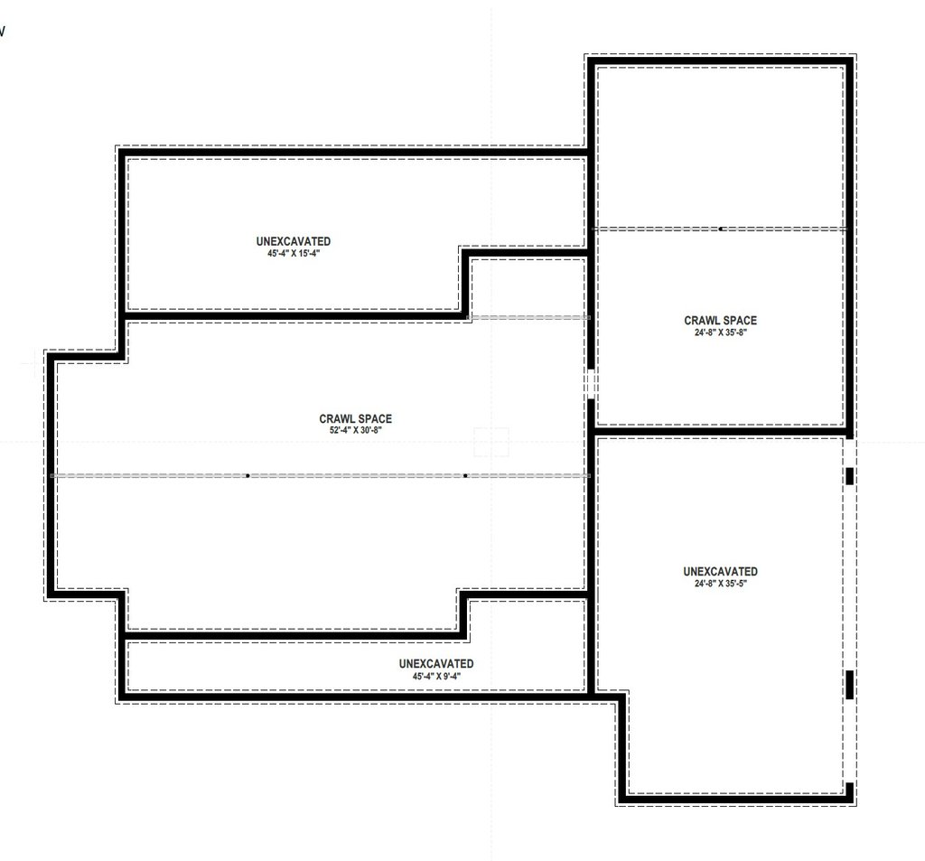 - Foundation Plan: This page shows all necessary notations and dimensions including support columns, walls, and excavated/unexcavated areas.