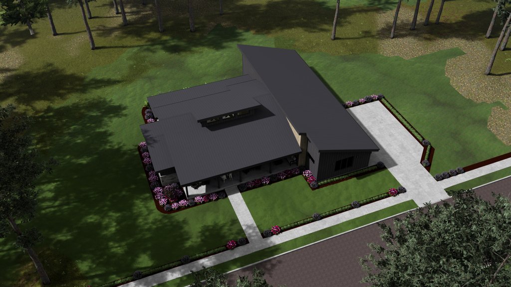 - Overhead Roof Plan(s): A view of the home from above showing roof pitch, peaks, valleys, and other details.