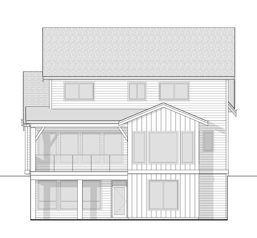 - Exterior Elevations: Views of the front, rear, and sides of the home detailing exterior finish work.