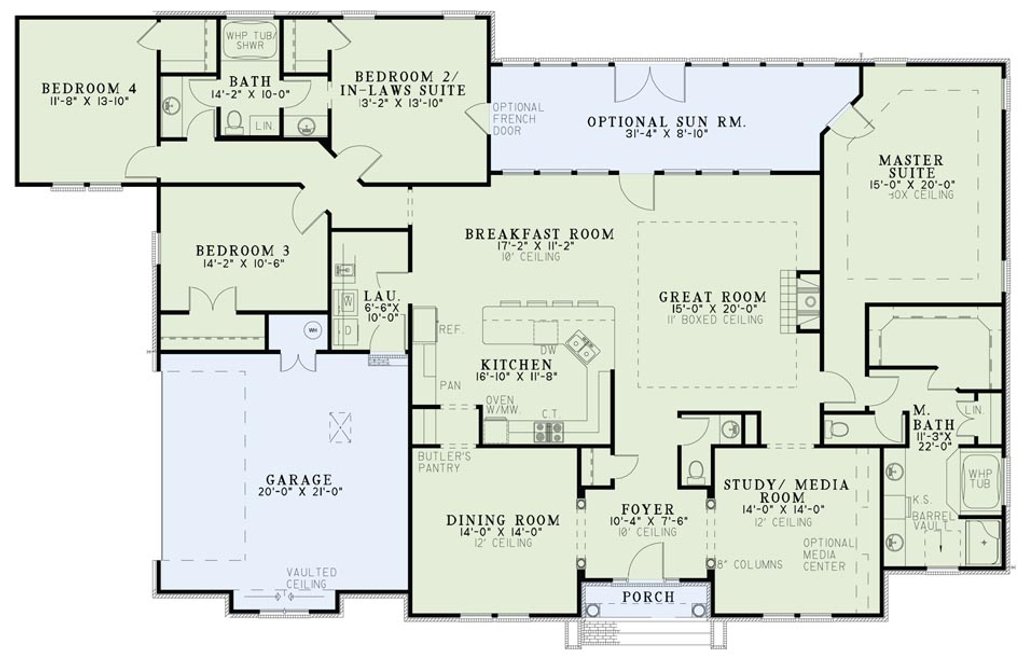 - Foundation Plan(s): Most plans are available with a slab or crawlspace foundation. Optional walkout style basement (three walls masonry with a wood framed rear wall with notes for the builder to locate the windows and doors) and optional full basement foundation available if the plan allows, at an additional cost. (Walk out is not shown on elevations unless finished walk out.)