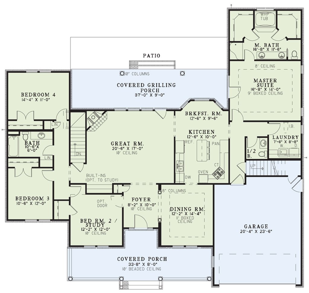 - Foundation Plan(s): Most plans are available with a slab or crawlspace foundation. Optional walkout style basement (three walls masonry with a wood framed rear wall with notes for the builder to locate the windows and doors) and optional full basement foundation available if the plan allows, at an additional cost. (Walk out is not shown on elevations unless finished walk out.)