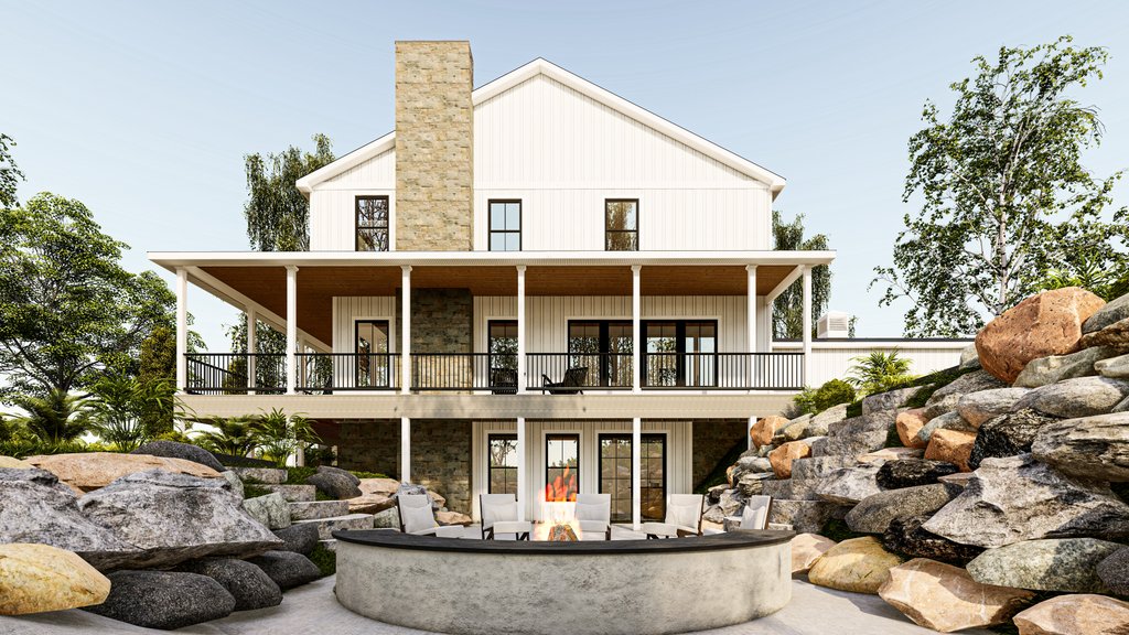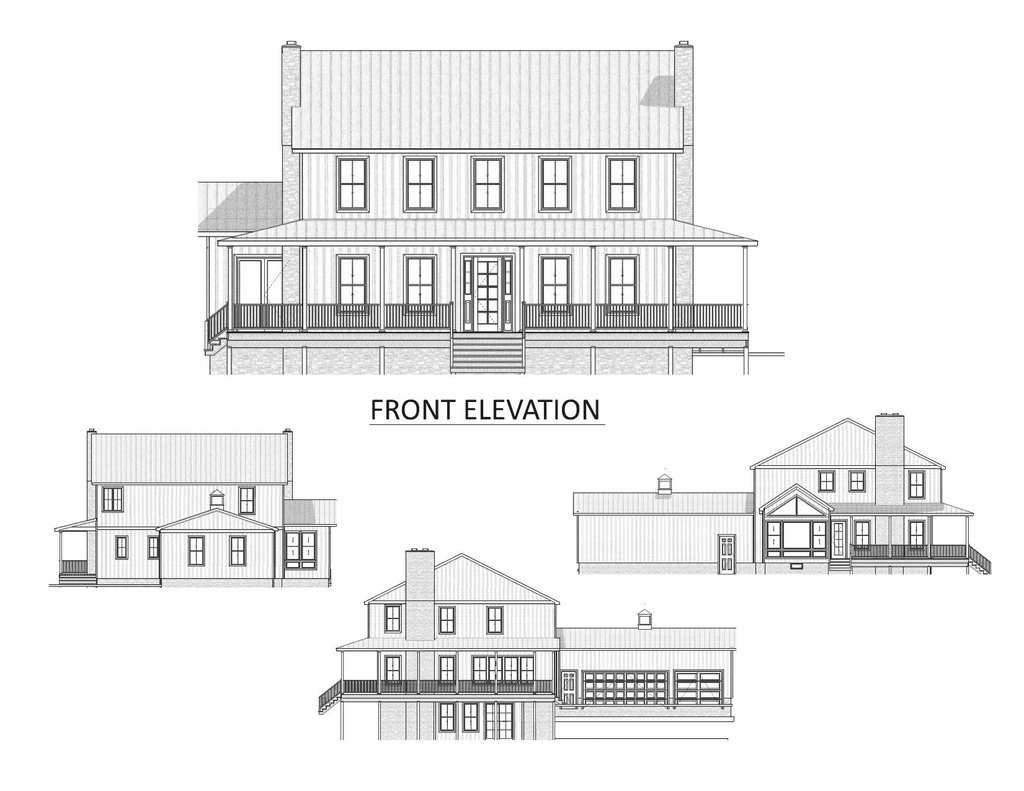 - Exterior Elevations: A blueprint picture of all four sides showing exterior materials and measurements.
