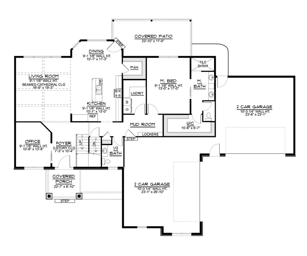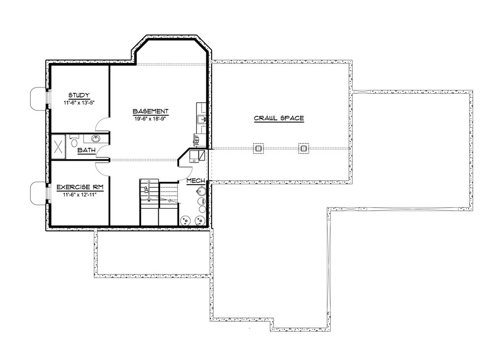 - Foundation Plan: This page shows all necessary notations and dimensions including support columns, walls, and excavated/unexcavated areas.