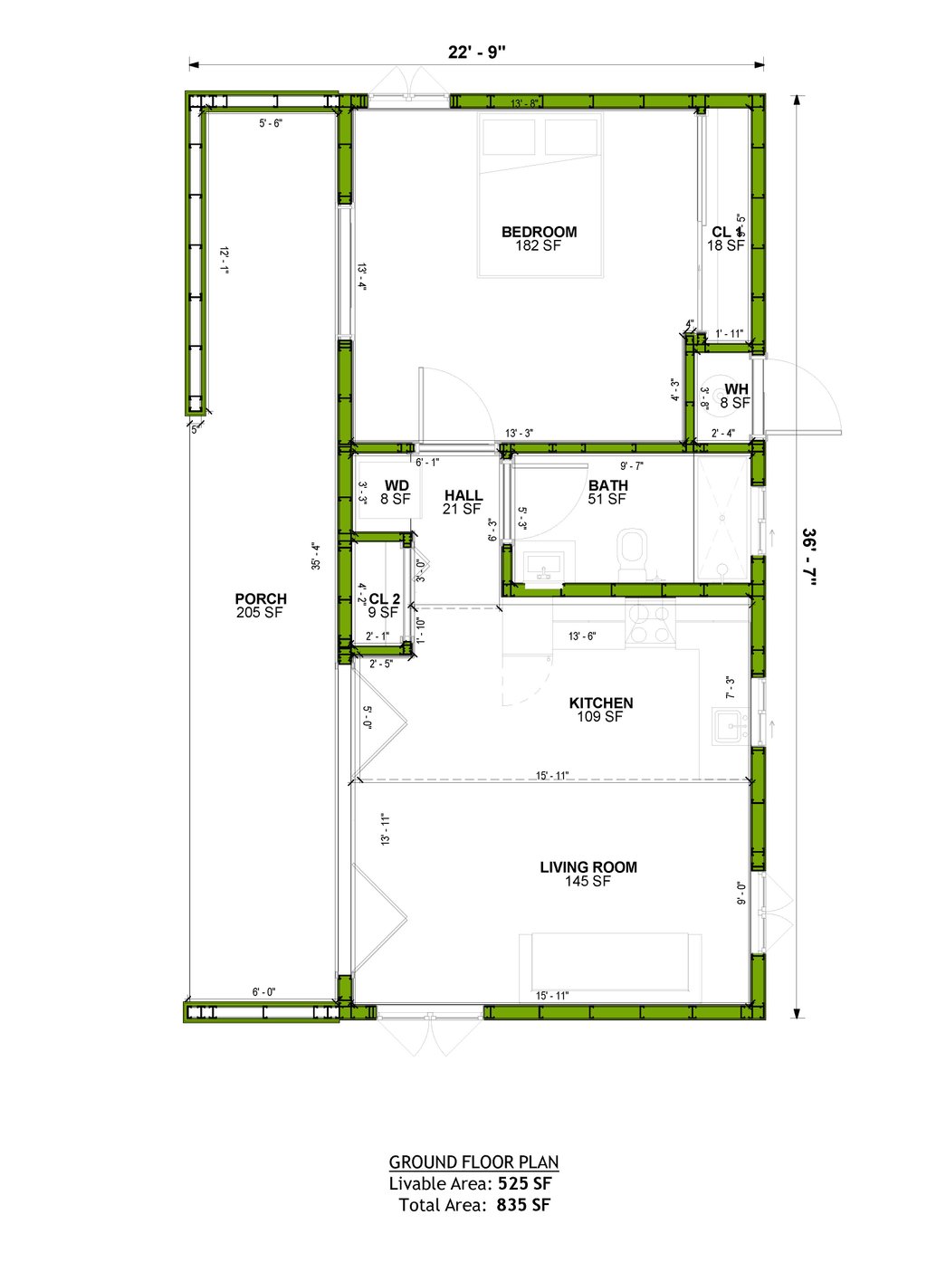 All plans are drawn at ¼” scale or larger and include :