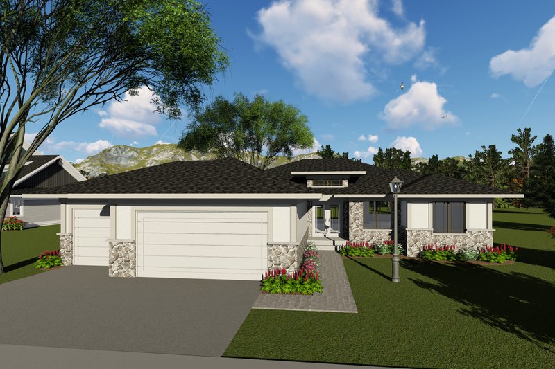 Exterior Wall Finish : Stucco. Stone. Horizontal Siding.
